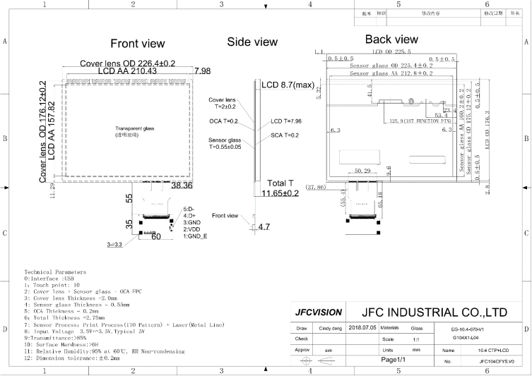 10.4 inch PCAP Touch Panel for Touch Screen - JFC104CFYS.V0